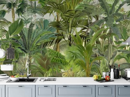 mural de papel de parede de tigre verde personalizável chamado Tiger Hide and Seek para lounges