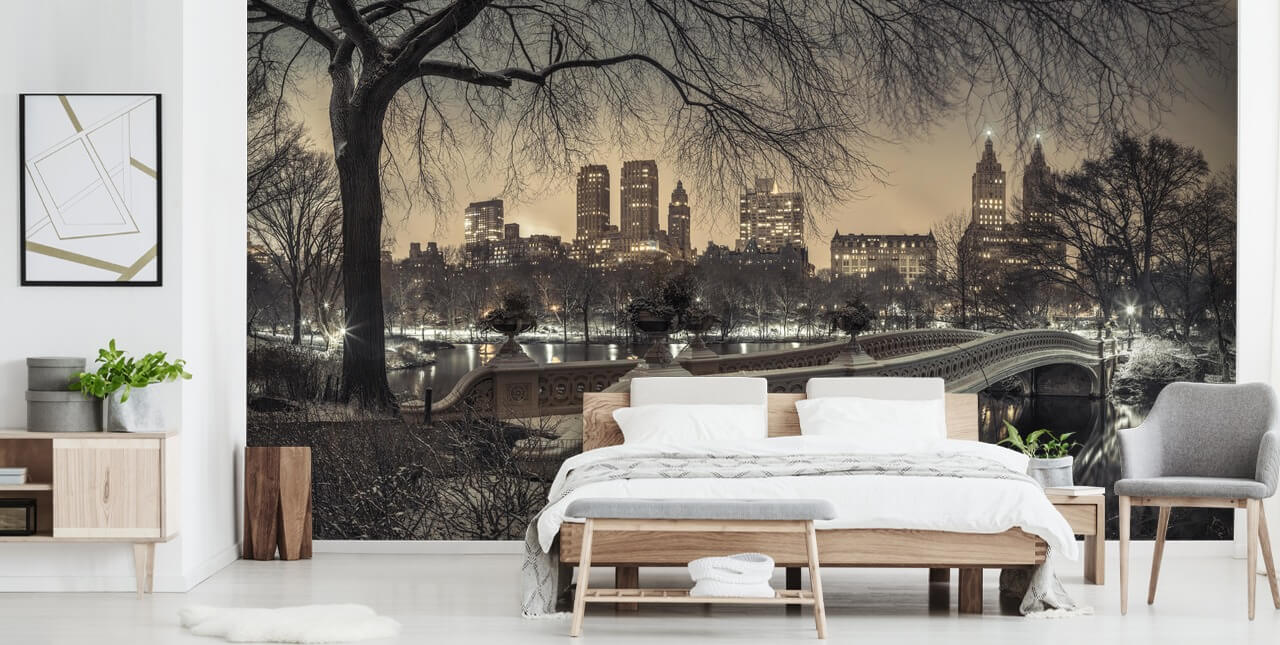 Impressionante Central Park com mural de parede Manhattan Moody Lights. Feito sob medida para caber perfeitamente na sua parede.