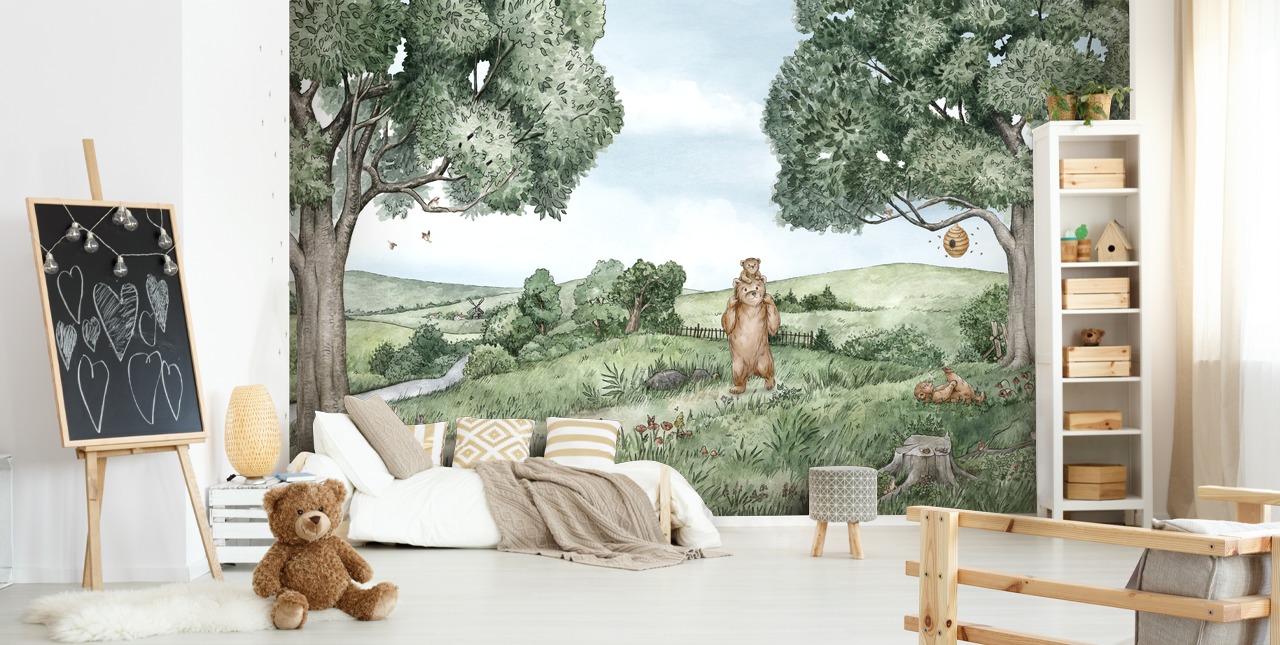 Ursos e abelhas - Mural de papel de parede para crianças