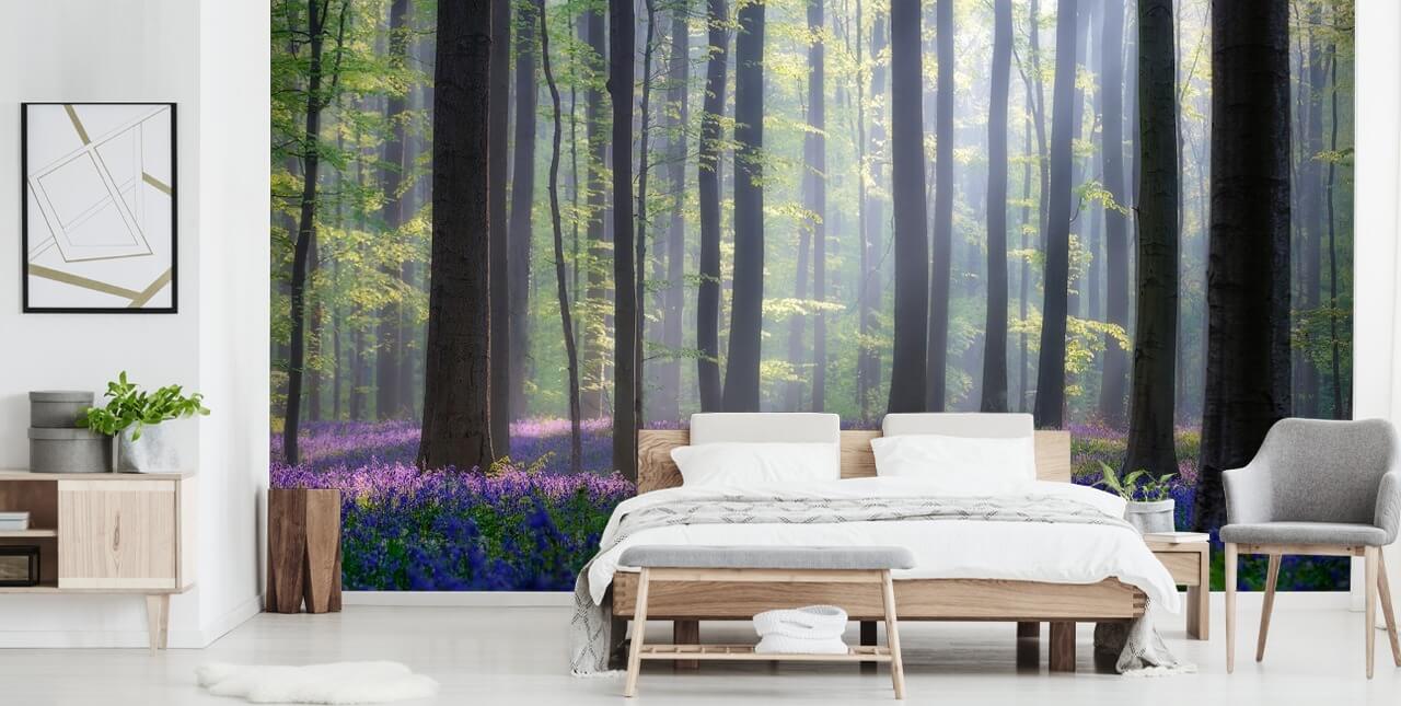 Decore a sua parede com este papel de parede Bluebell Wood feito à medida. Fornecido em painéis e fácil de instalar.