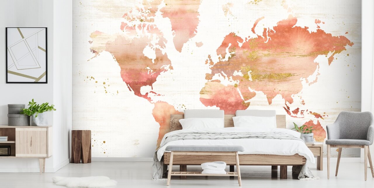 Se você está procurando um papel de parede exclusivo para o mapa mundial, escolha este papel de parede Desert Blooms Abstract Map feito à medida da Wallsauce.com.