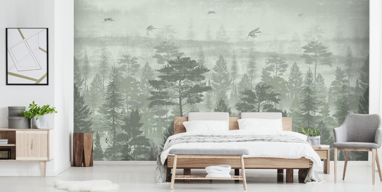 Murais de parede florestal como este são sempre populares porque nos permitem trazer a natureza para nossas casas. Papéis de parede como Forest Mist são atraentes porque transformam um ambiente agitado ou caótico em um ambiente calmo e acolhedor.