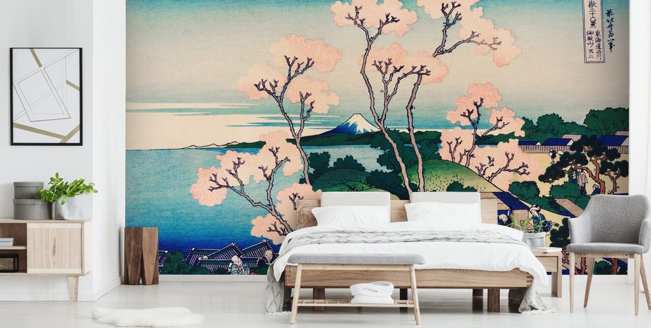 Com tons tão bonitos de rosa, azul e roxo, este papel de parede de flor de cerejeira japonesa ficaria ideal em qualquer ambiente. Combinado com uma decoração simples, este papel de parede de arte japonesa transformará qualquer espaço em total paz e harmonia.