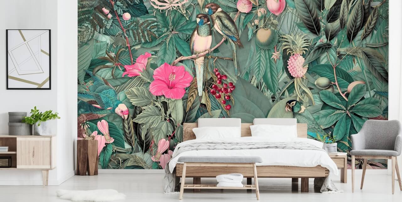 Dê cor às suas paredes com este deslumbrante mural de papel de parede Green In the Jungle desenhado por Andrea Haase.