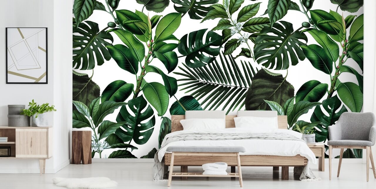 Traga bondade verde frondosa para as suas paredes com este lindo mural de papel de parede Leafy Green Tropics do fabuloso Burcus Korkmazyurek. Ideal para um banheiro tropical ou uma sala de estar inspirada na natureza!