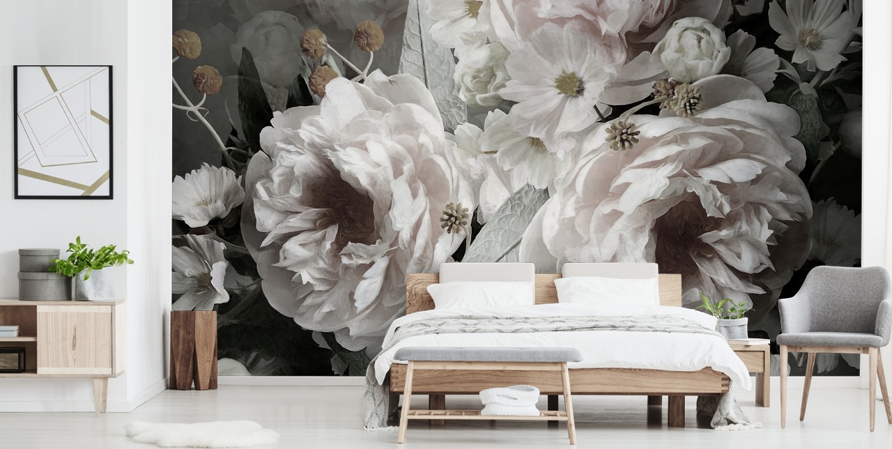Adicione drama e beleza à sua casa ou empresa com o atraente mural de papel de parede Peonies de Marina Stupakova.