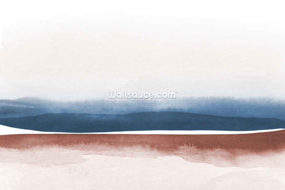 Instale este mural de papel de parede Terracotta and Blue Lands feito à medida em sua casa. O papel de parede de paisagem abstrata perfeito para uma sala de estar, quarto, escritório doméstico e muito mais.