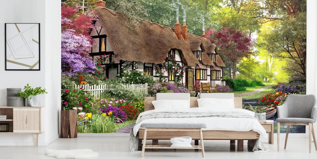 Sinta-se calmo e sereno com este belo mural Woodland Walk Cottage em sua casa. Feito sob medida para caber na parede.