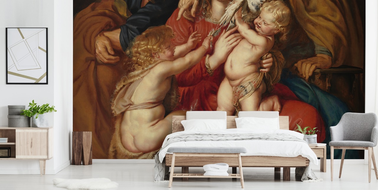 Mostre sua paixão pelas artes plásticas com The Holy Family with St. Elizabeth, St. John e um mural de papel de parede Dove.