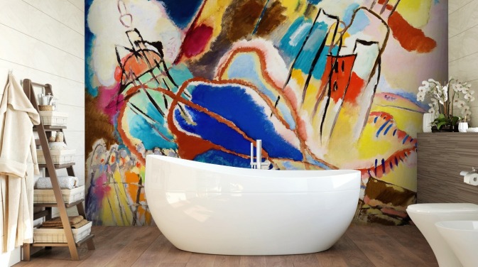 Introduza a energia vibrante e a abstração inovadora de Wassily Kandinsky em seu espaço com um mural de parede feito sob medida exibindo sua obra de arte icônica. Famosas por seu uso revolucionário de cores, formas e composições dinâmicas, as peças de Kandinsky trazem um toque contemporâneo e profundidade emocional a qualquer ambiente.