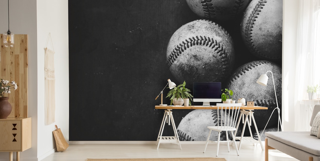 Transforme qualquer cômodo da sua casa ou empresa com o cativante mural de papel de parede de beisebol em preto e branco da Wallsauce.