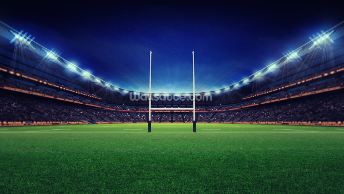 Traga as luzes brilhantes do estádio de rúgbi para o quarto do seu filho com Rugby Pitch at Night, um cativante mural de papel de parede de rúgbi.