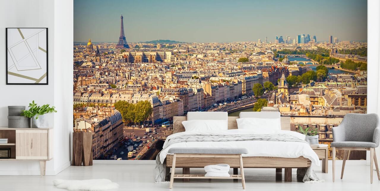 Dê uma olhada na vista deslumbrante e romântica neste papel de parede Aerial View of Paris feito sob medida.