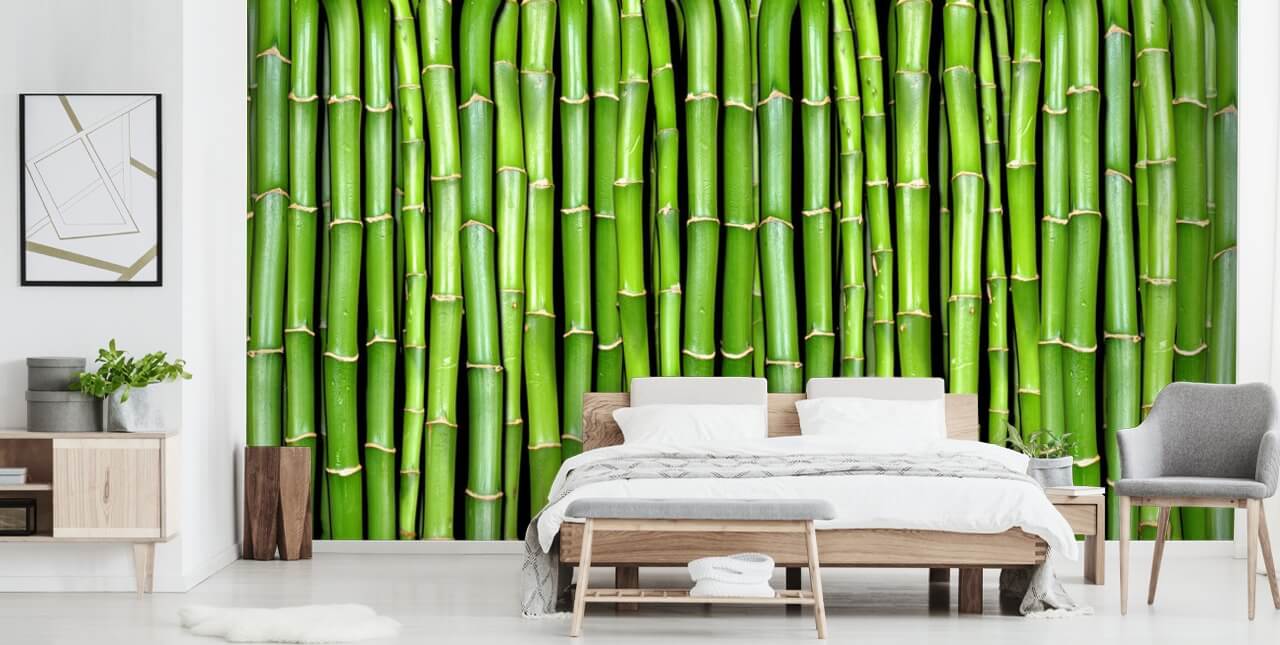 Decore sua parede com este relaxante papel de parede de bambu. Fornecido em painéis e fácil de instalar.