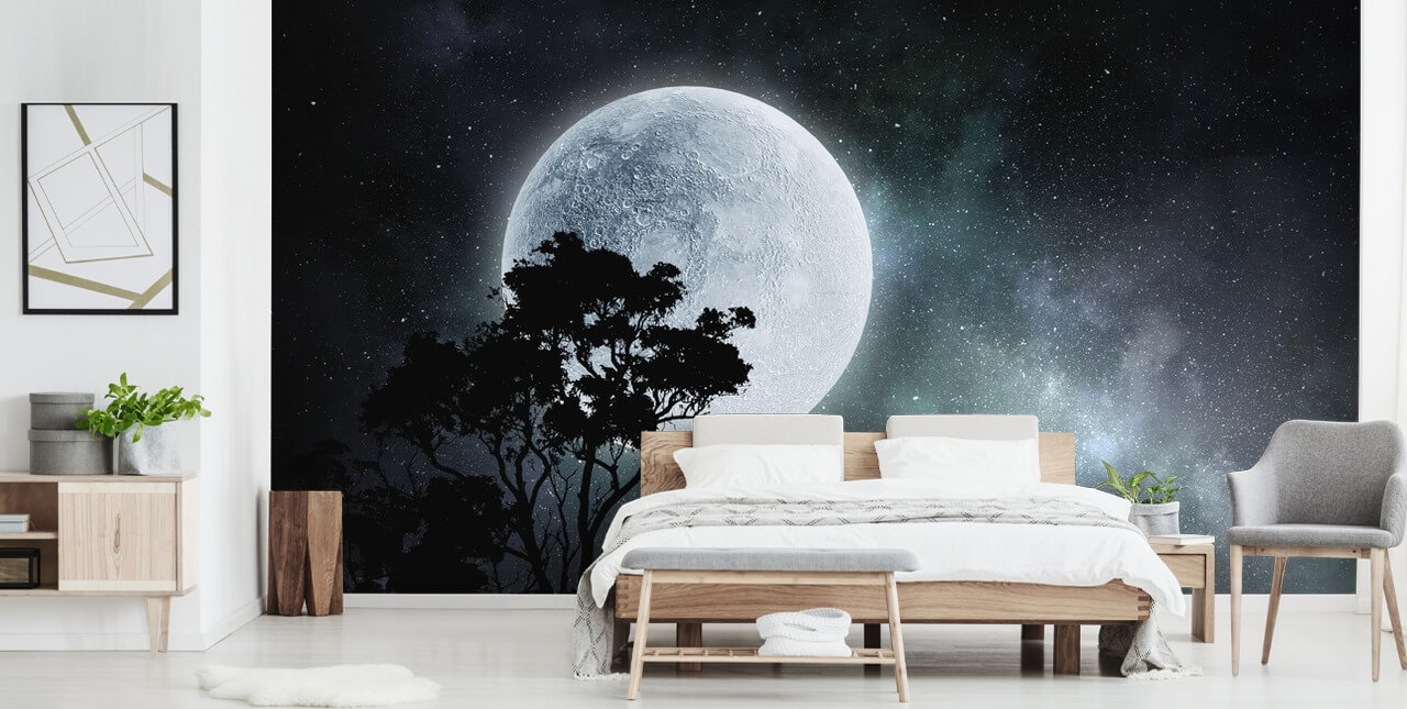 Obtenha este lindo papel de parede Black and White Moon. Feito para medir as dimensões da sua parede.