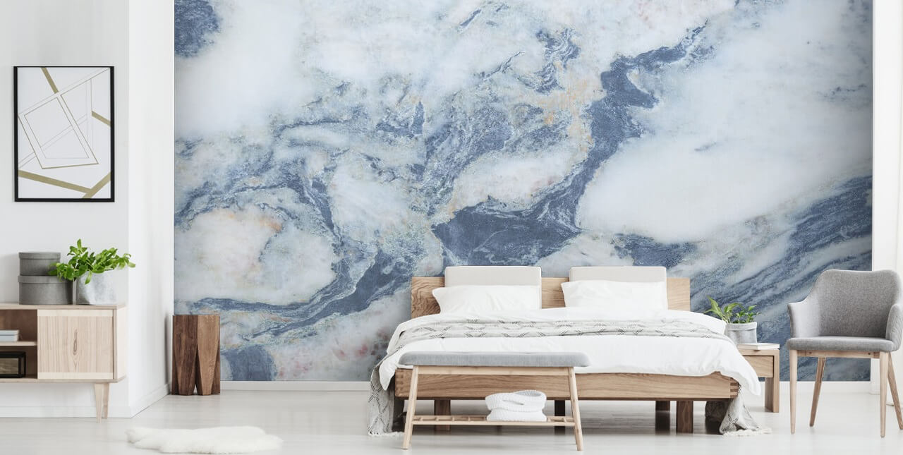 Transforme sua cozinha, banheiro ou sala de estar com este lindo papel de parede Blue Marble Effect da Wallsauce.