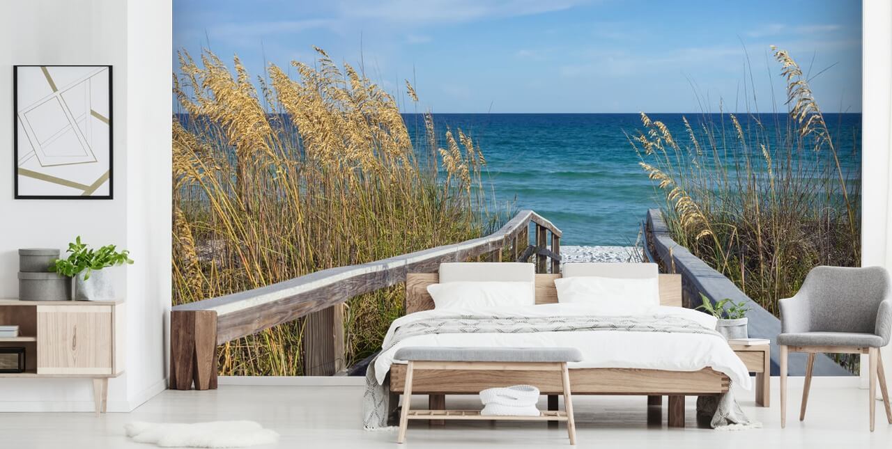 Impressionante mural de papel de parede Boardwalk de Wallsauce, trará o sol e o mar para o seu quarto.