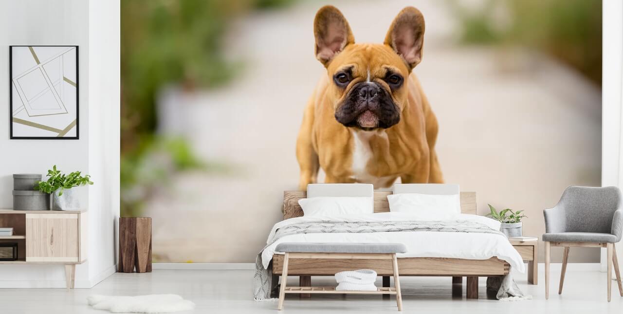 Se você adora Bulldogs Franceses, com certeza vai adorar este papel de parede Bulldog on the Run feito sob medida da Wallsauce.com!