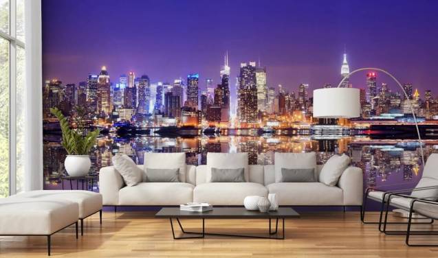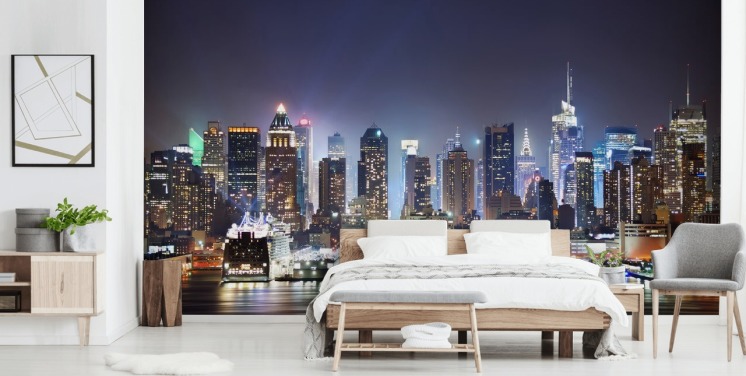 mural de papel de parede brilhante da cidade de Nova York chamado Manhattan Skyline para quartos, salas de estar e salas de jantar