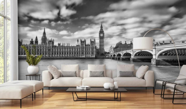 mural de papel de parede personalizável do horizonte de Londres chamado London para quartos e salas de estar