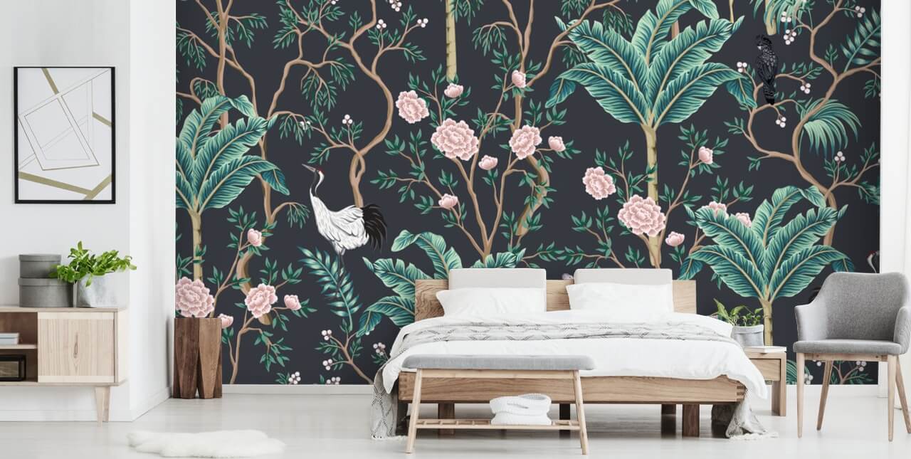 Instale este lindo papel de parede Dark Chinoiserie em sua casa! Feito sob medida para caber perfeitamente na sua parede.