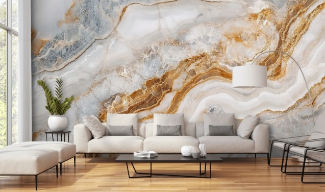 mural de papel de parede com efeito de mármore de areia chamado Onyx Sand Marble para banheiros, cozinhas e quartos