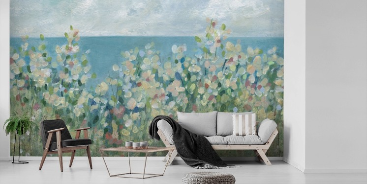 mural abstrato de papel de parede de paisagem marinha chamado Distant Breakers de Carol Robinson