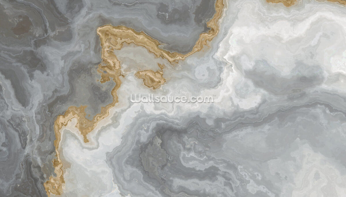 Traga o estilo e o luxo do mármore para sua casa por uma fração do custo com nosso cativante papel de parede elegante em mármore cinza e dourado.