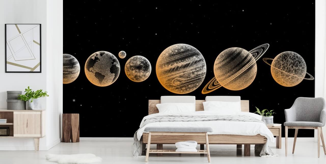 Crie uma parede marcante em sua casa com este mural de papel de parede Engraved Planets feito sob medida.