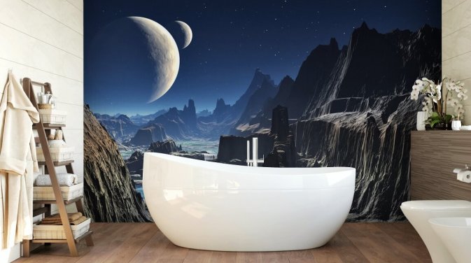 Transforme uma sala em uma nave espacial alienígena, uma paisagem cheia de dragões ou um deserto futurista com um mural de papel de parede de fantasia. Pegue uma parede simples e chata e transforme-a em algo espetacular com papel de parede de ficção científica que despertará a imaginação de quem a vê.