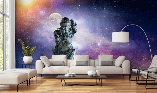 Transforme uma sala em uma nave espacial alienígena, uma paisagem cheia de dragões ou um deserto futurista com um mural de papel de parede de fantasia. Pegue uma parede simples e chata e transforme-a em algo espetacular com papel de parede de ficção científica que despertará a imaginação de quem a vê.