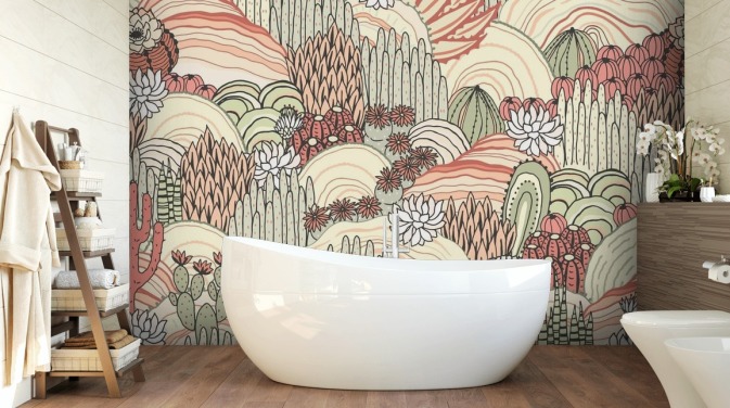mural de papel de parede floral personalizável rosa chamado Pink Orchids para spas, hotéis e banheiros