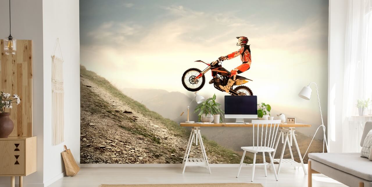 Instale este mural de parede do Campeonato de Motocross feito sob medida. Disponível em descascar e colar ou colar o papel de parede.