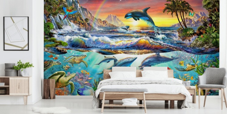 De golfinhos brincalhões a pores do sol tranquilos, nosso cativante papel de parede oceânico transformará sua casa ou escritório. O oceano é o tema perfeito para um mural de parede porque nos faz sentir calmos e relaxados. Crie um santuário tranquilo em sua casa com uma cena oceânica pacífica.