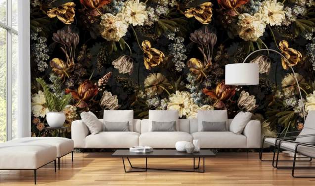 papel de parede floral e pássaro escuro