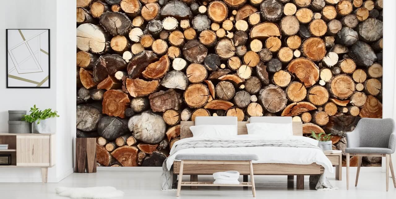 Crie a parede perfeita para cabanas de madeira com este papel de parede Pile of Fire Wood feito à medida.