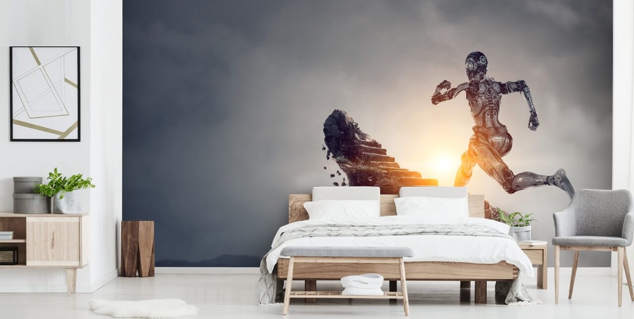 Você é um grande fã de ficção científica? Então, por que não criar uma fantástica parede de assinatura em sua casa com este mural de papel de parede Steps to Glory?