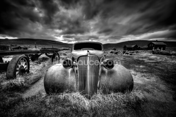 mural de papel de parede de carro vintage em preto e branco chamado Too Old to Drive by 1x - Artista Carsten Schlipf