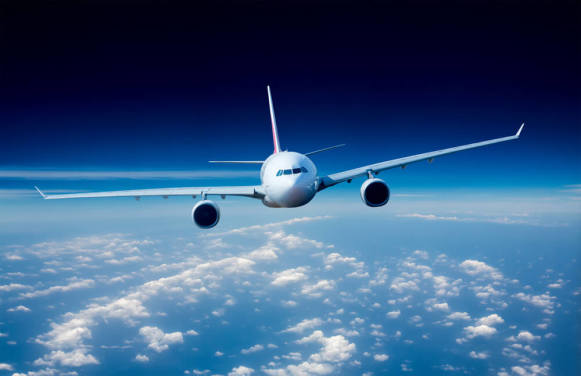 mural de papel de parede de avião azul e branco chamado Passenger Airliner para quartos e escritórios