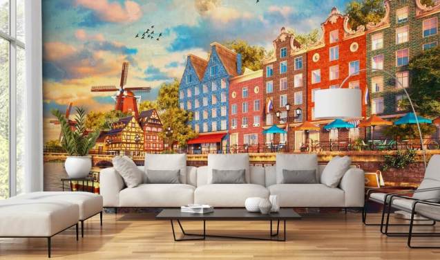 papel de parede old amsterdam houses