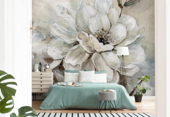 mural de papel de parede floral personalizável cinza chamado Neutral Bouquet de Carol Robinson para quartos