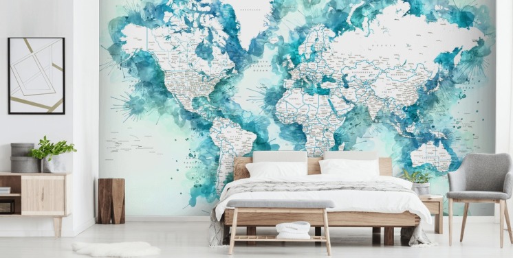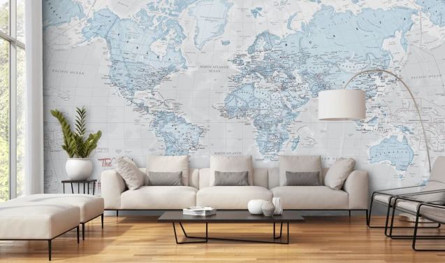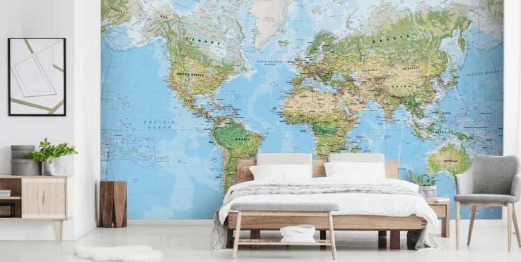 mural de papel de parede de mapa do mundo personalizável chamado Mural do Mapa do Mundo para quartos