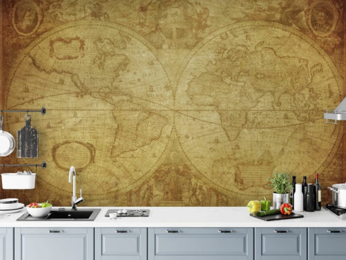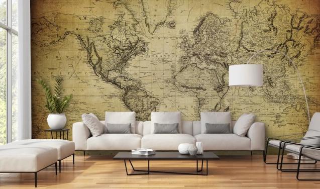 mural de papel de parede de mapa mundial de estilo vintage chamado Mapa Antigo para residências, escritórios e quartos