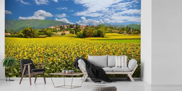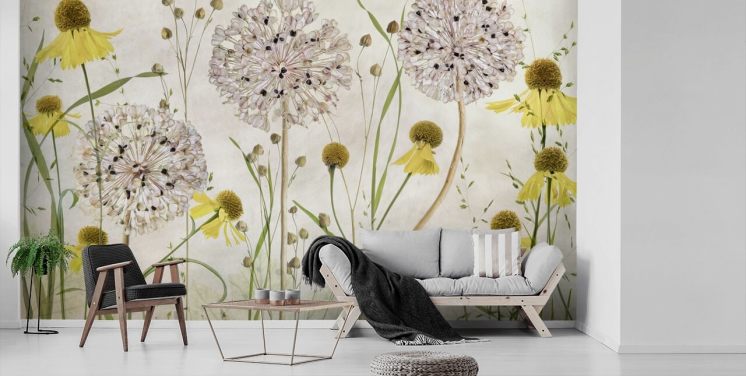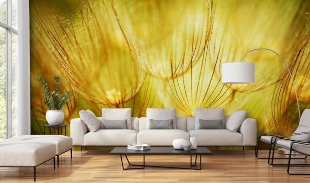 Ótimo para espaços sem luz e calor, ilumine seu quarto com um impressionante mural de parede amarelo. Associado à felicidade, alegria e energia, um mural amarelo pode mudar sua decoração e criar uma sala cheia de boas vibrações.