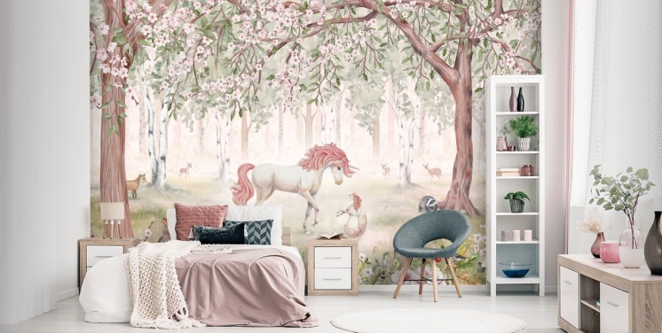 Unicórnios, arco-íris, cavalos, florestas encantadoras, montanhas abstratas, arte pop, padrões coloridos - temos uma enorme coleção de murais de parede perfeitos para o quarto de uma menina. Quer adorem coisas bonitas em rosa ou verde escuro e misteriosas, com certeza encontrarão algo que amam em nossa linha de papéis de parede para quartos de meninas.