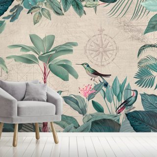 Placera denna vintage tapet bakom soffan i din lounge och måla de omgivande väggarna med en tropisk grön. Välj naturlig fiberdekor med rotting och vide för att få in ännu mer exotisk känsla i rummet.