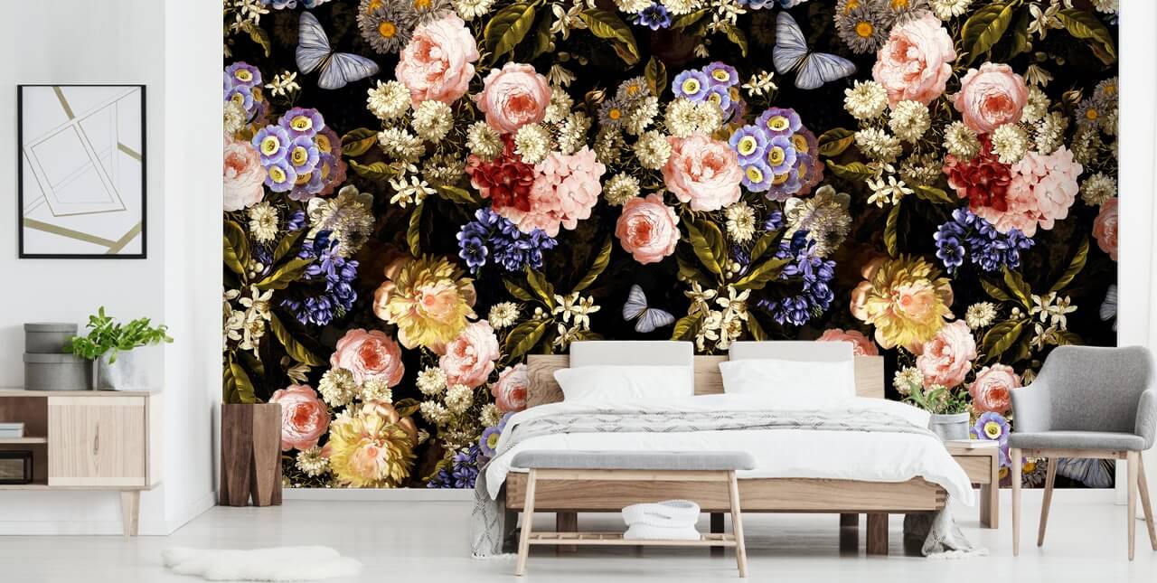 Omdu vill skapa en slående funktionsvägg hemma väljer du den här skräddarsydda Antique Dutch Garden tapet. Denna Uta Naumann-design är det perfekta valet för ett romantiskt sovrum eller ett maximalistiskt vardagsrum. Hur skulle du utforma denna mörka blommiga tapet i ditt hem?