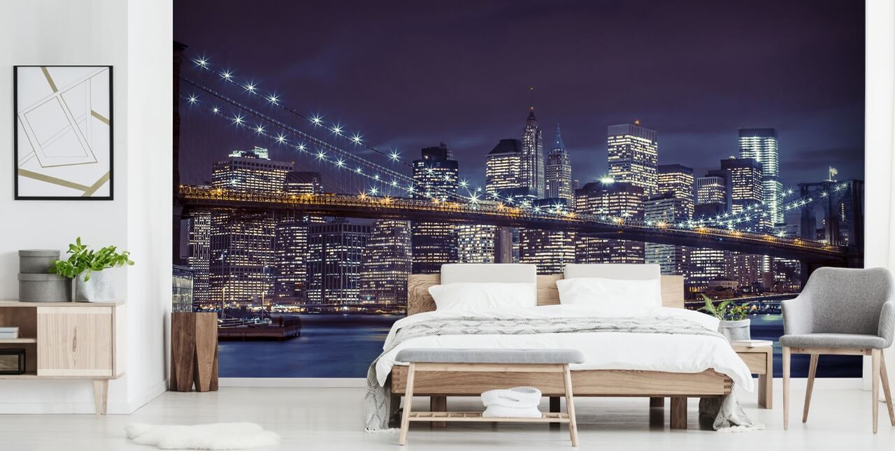 Kliv in i staden som aldrig sover med den här väggmålningen i Brooklyn Bridge Moody Blue.