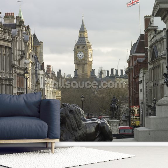 Fåen fantastisk utsikt över Big Ben i ditt hem med detta skräddarsydda Trafalgar Square med Big Ben tapet från Wallsauce.com.