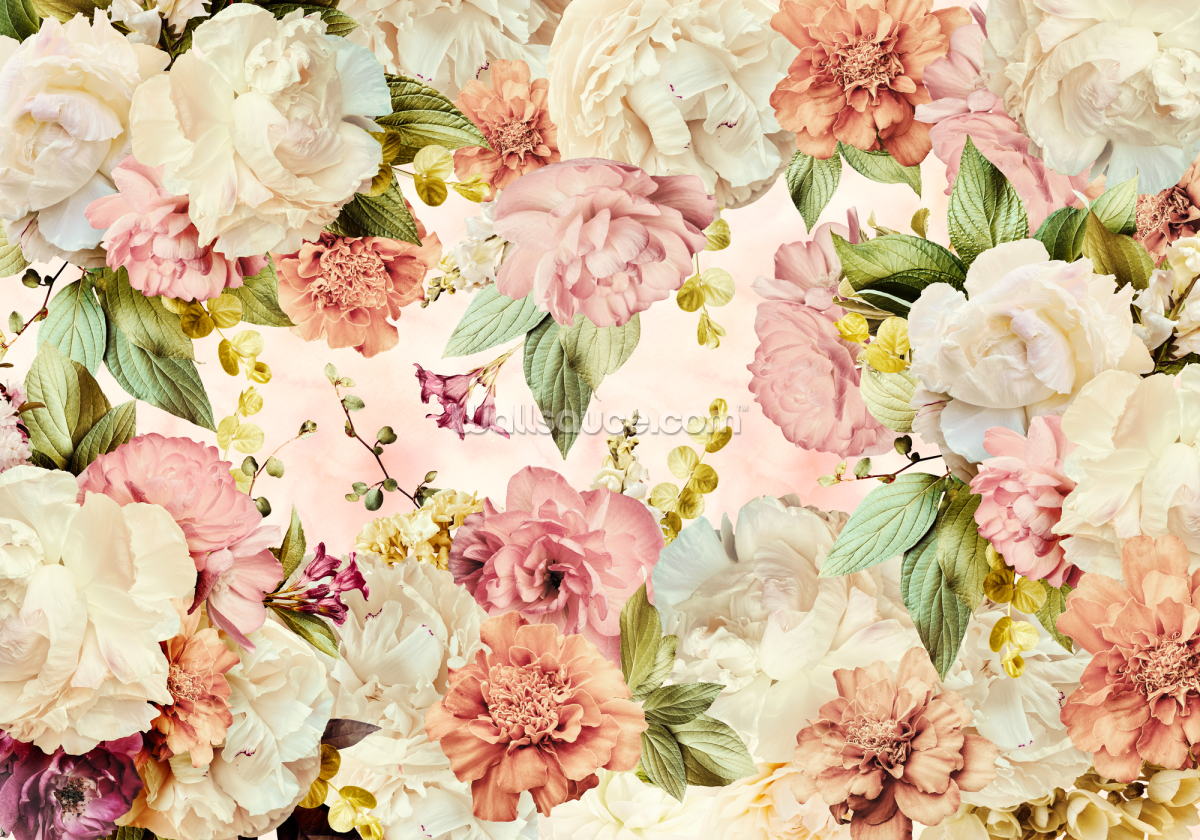 Skapa en vacker vägg i ditt hem med denna skräddarsydda Buquet of Pink Peonies tapet.